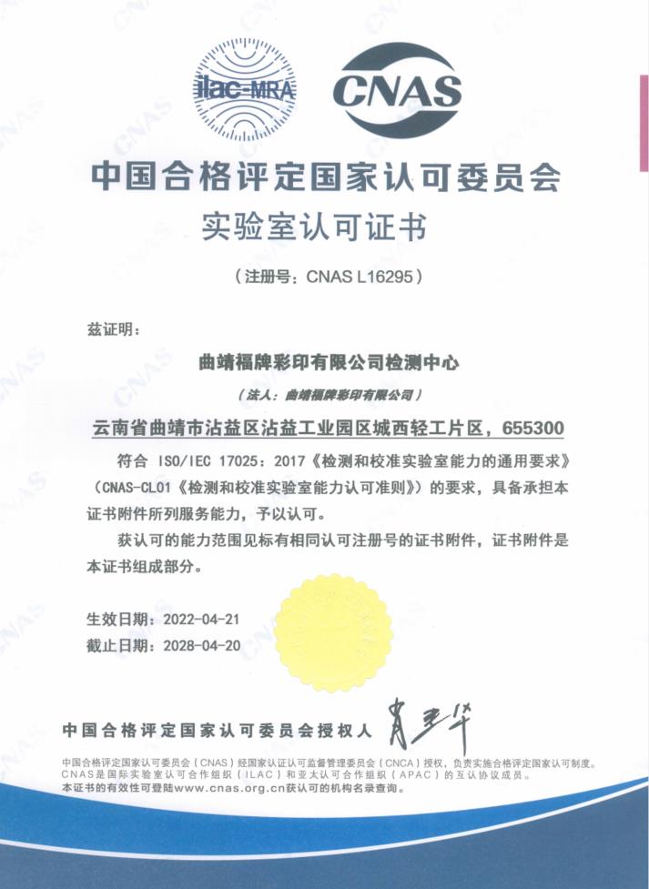 實(shí)驗(yàn)室認(rèn)可證書(shū)